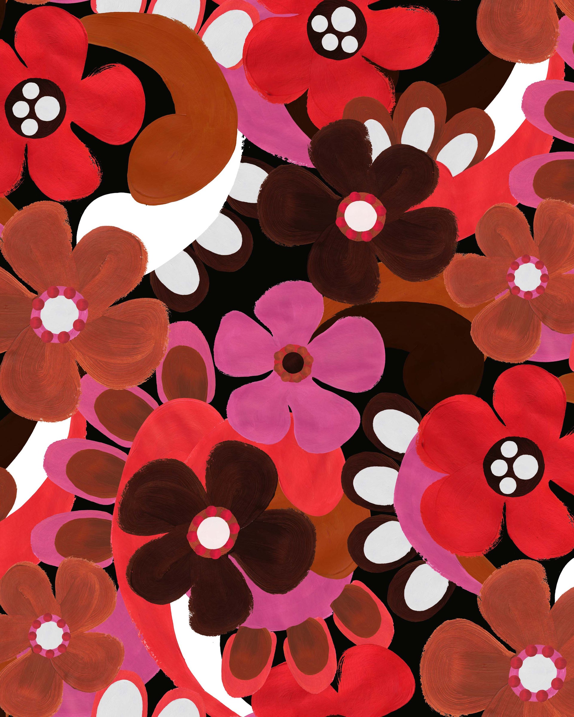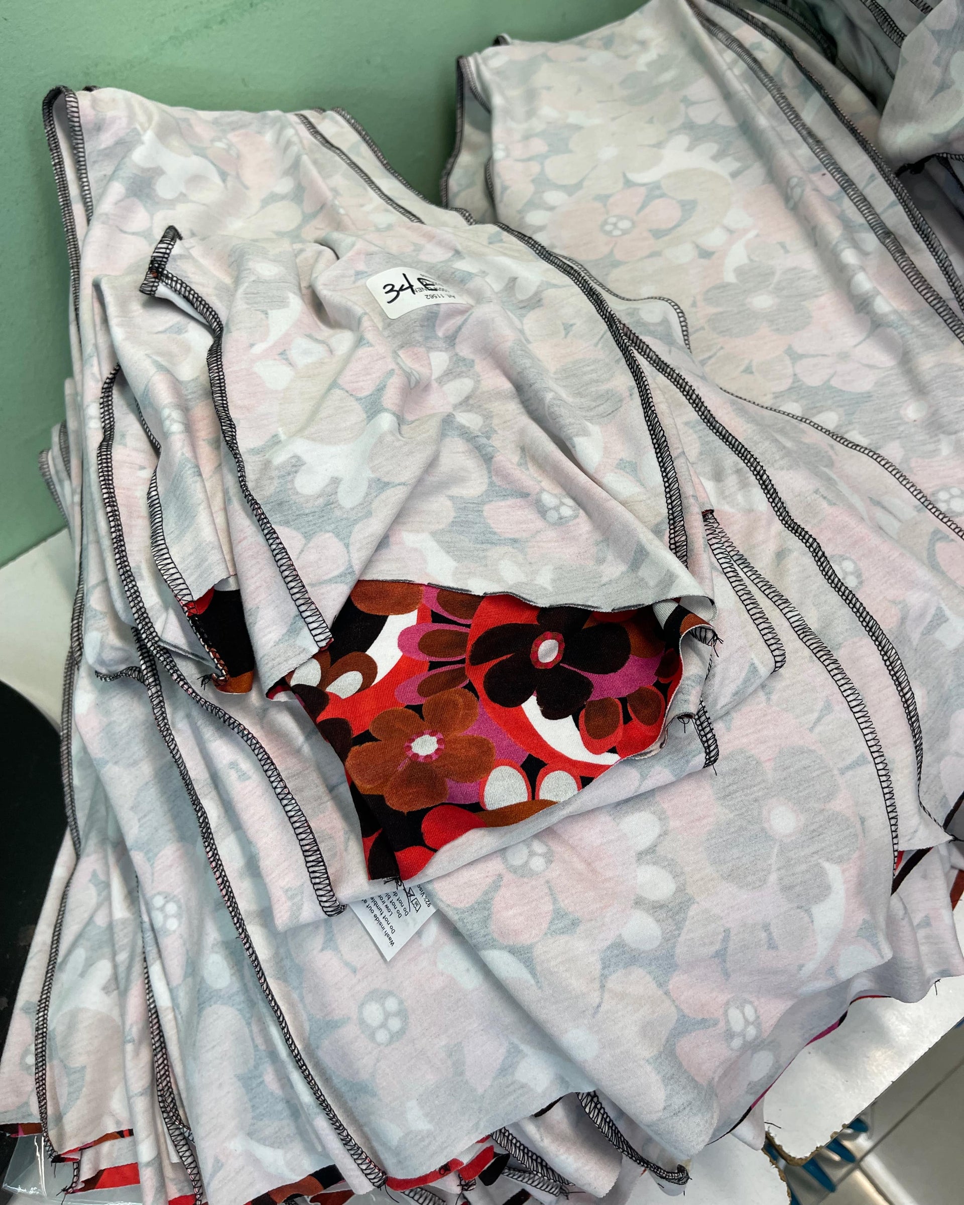 EcoVERO viscose yarns and elastane are knitted to form a fabric. The fabric is then taken to the knitting house and dyed. After our fabric is washed and dyed, we have the fun part – applying our gorgeous hand painted patterns to the fabric.