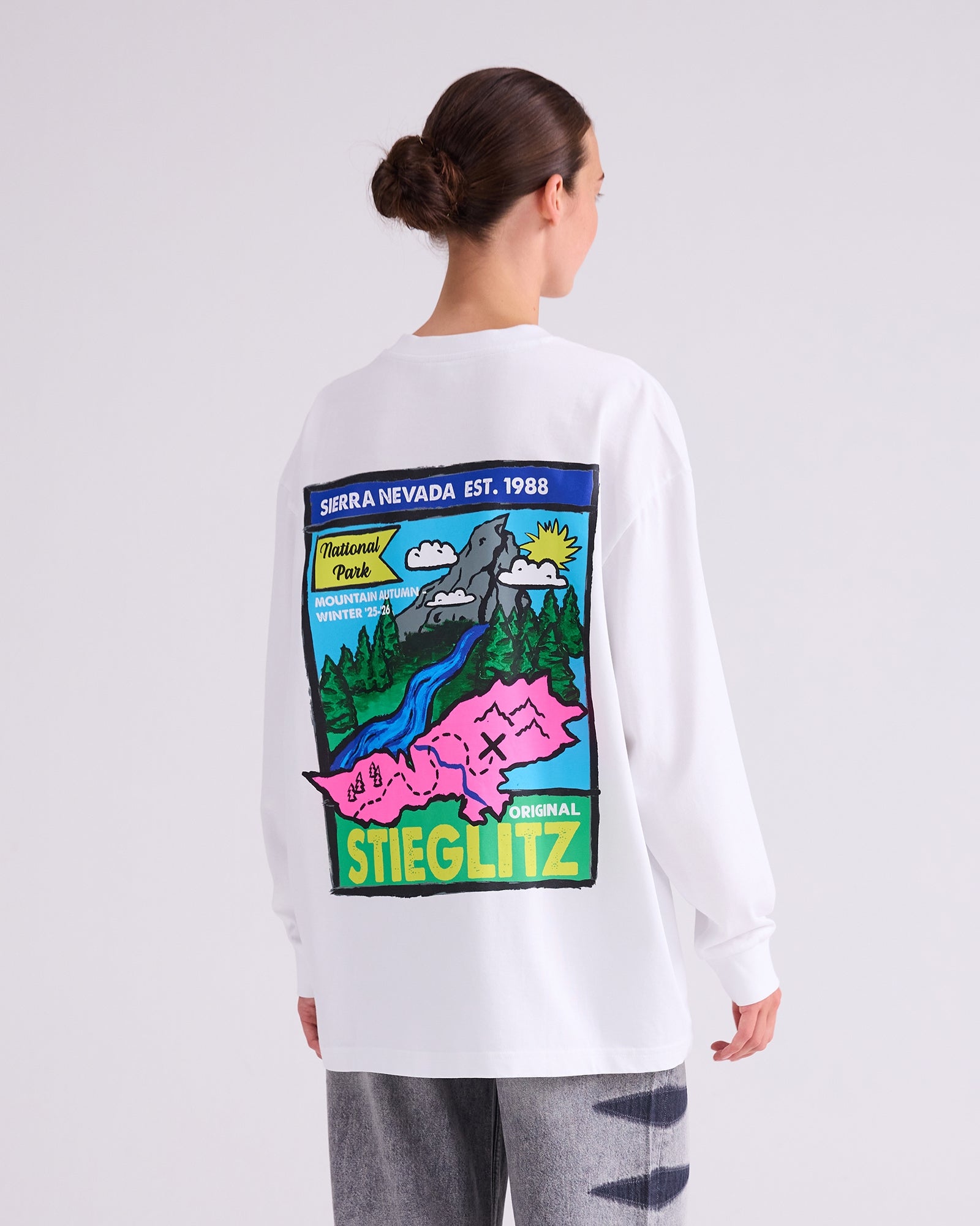 The Florino Skate Longsleeve keeps it clean with a stitched logo on the front and goes bold on the back with a colourful Sierra Nevada artwork. Oversized fit, ultimate comfort — made for laid-back days and standout moments.