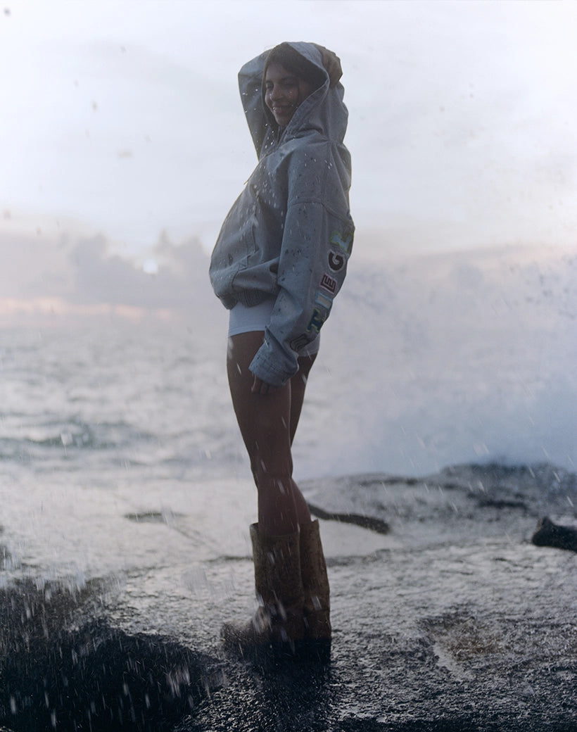 Ado Zipped Denim Hoodie | Grey
