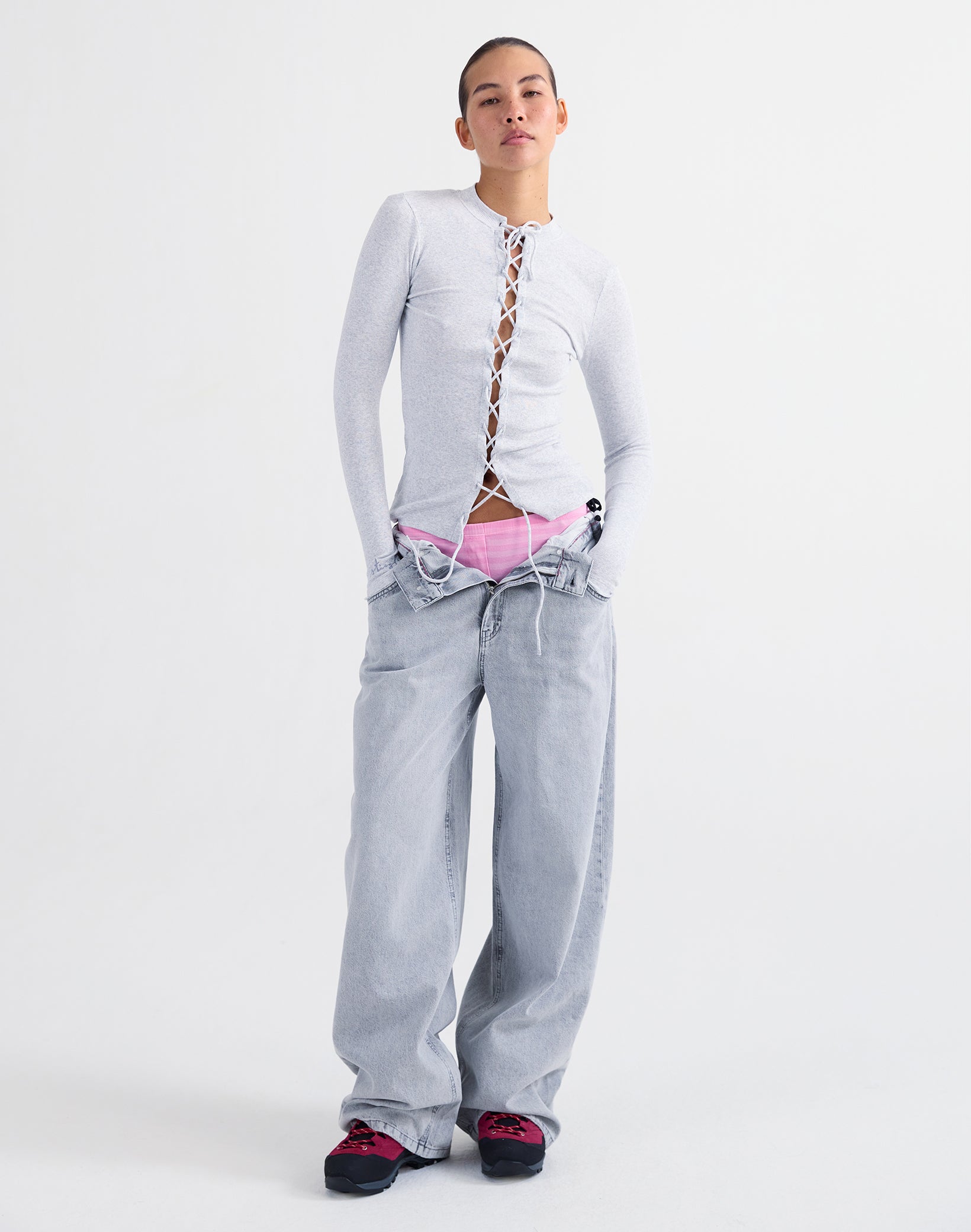 Maak kennis met de Loy Longsleeve: jouw statement layering piece met een opvallende lace-up voorkant. De aangesloten fit en stretchy ribstof sluiten perfect aan, terwijl je met de strikdetails kunt spelen. Verkrijgbaar in fris groen en zacht grijs, geïnspireerd op de contrasten van Madeira. Stoer, flatterend en opvallend.