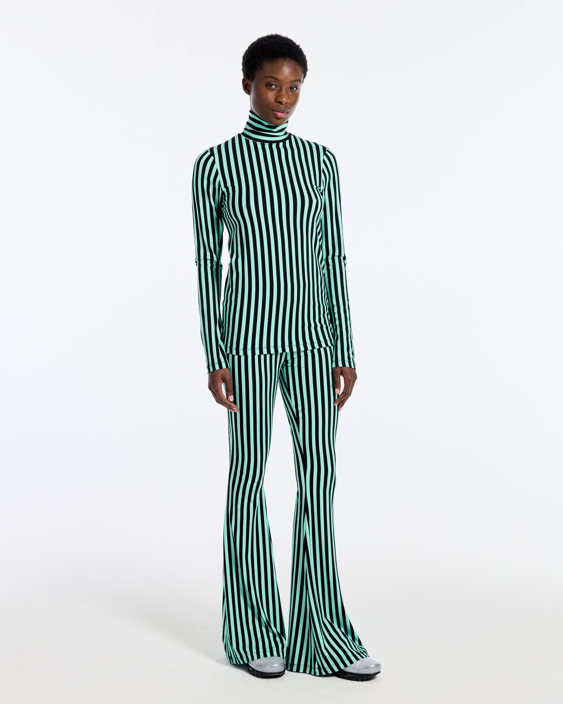 De Neva flared legging heeft een flared pasvorm en een opvallend gestreept patroon, waardoor het een echte eyecatcher is. Combineer hem met de Neva pulli voor een stijlvolle en gecoördineerde look.